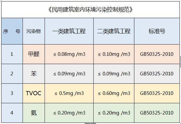 二是《民用建筑室內環境污染控制規范》GB50325-2010。該規范由質監檢驗檢測質監總局和住建部于二零零一年協同授予,于二零零二年執行并在2006、2010、二零一三年干了相對的改動。注:一類工程建筑:住房、醫院門診、老年人工程建筑、幼稚園、院校課室等。二類工程建筑:寫字樓、店鋪、賓館、文化藝術休閑娛樂會所、公共圖書館、體育場館、公共場合。